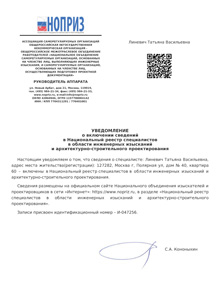 - Сертификат «Ассоциации Инженерные изыскания в строительстве» № 0219, 2007г