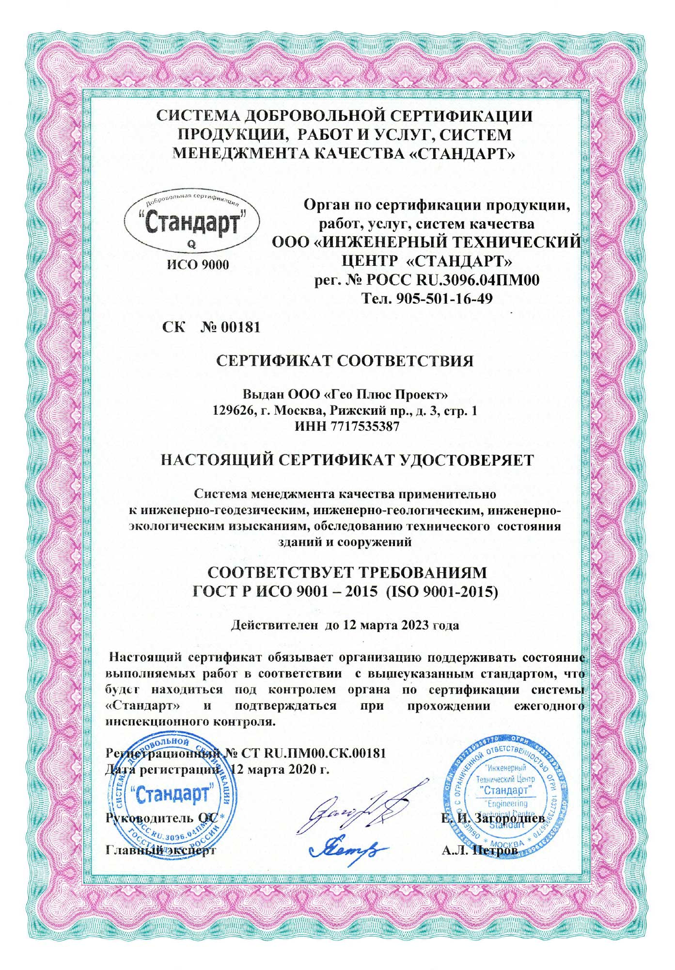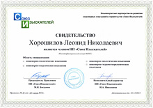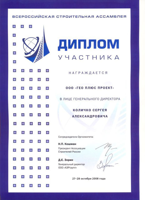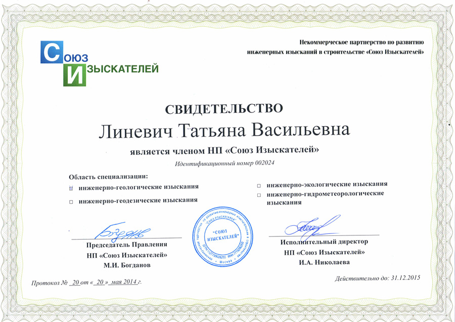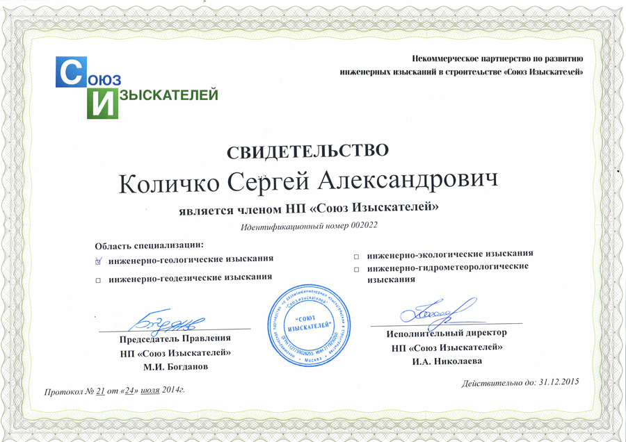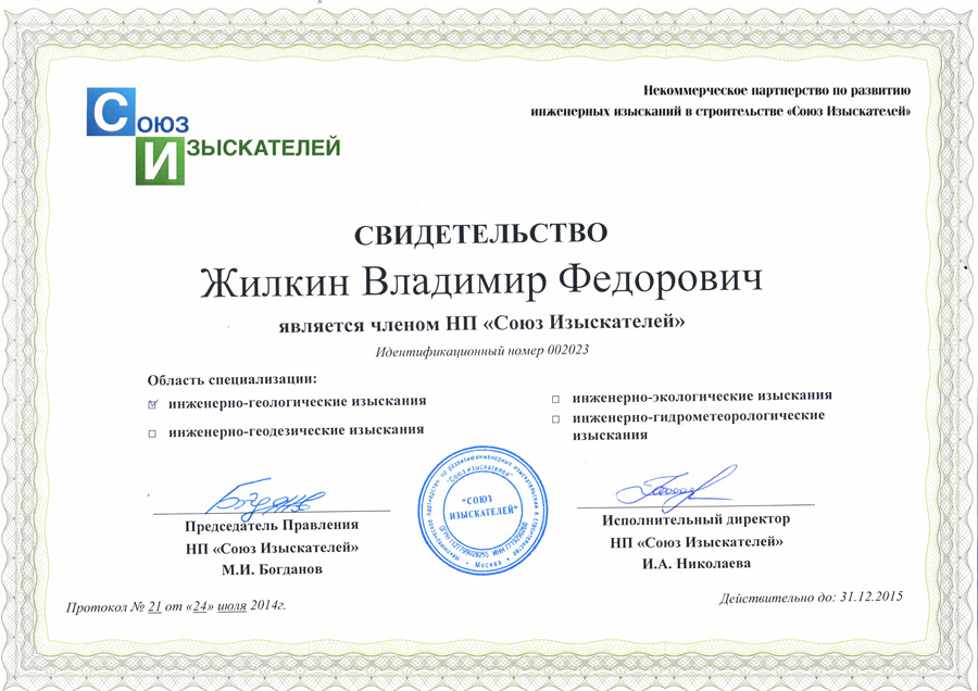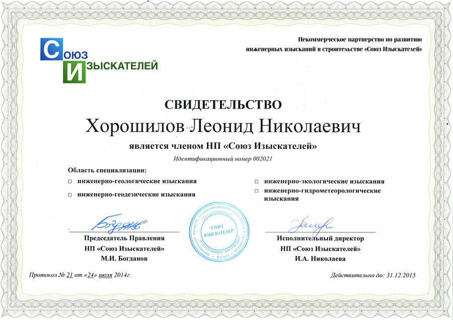 - Сертификат «Ассоциации Инженерные изыскания в строительстве» № 0219, 2007г
