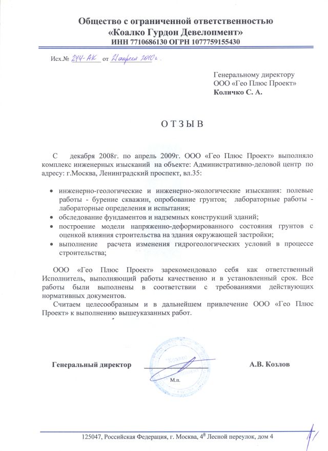 Клиент: ООО "Коалко Гурдон Девелопмент"