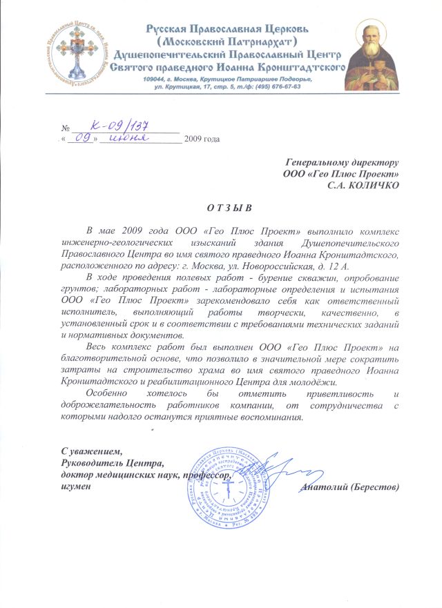 Клиент: Душепопечительский Православный Центр святого праведного Иоанна Кронштадтского