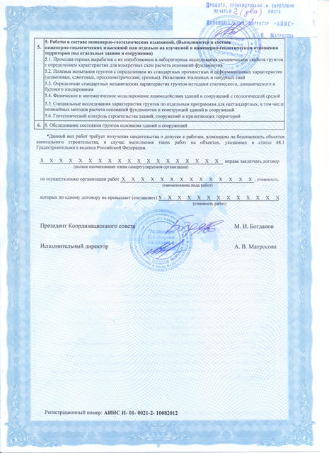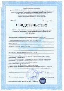 - «Ассоциация Инженерные изыскания в строительстве» СРО - Свидетельство о допуске к работам по выполнению инженерных изысканий 01-И-№0021-2от 10.08.2012г