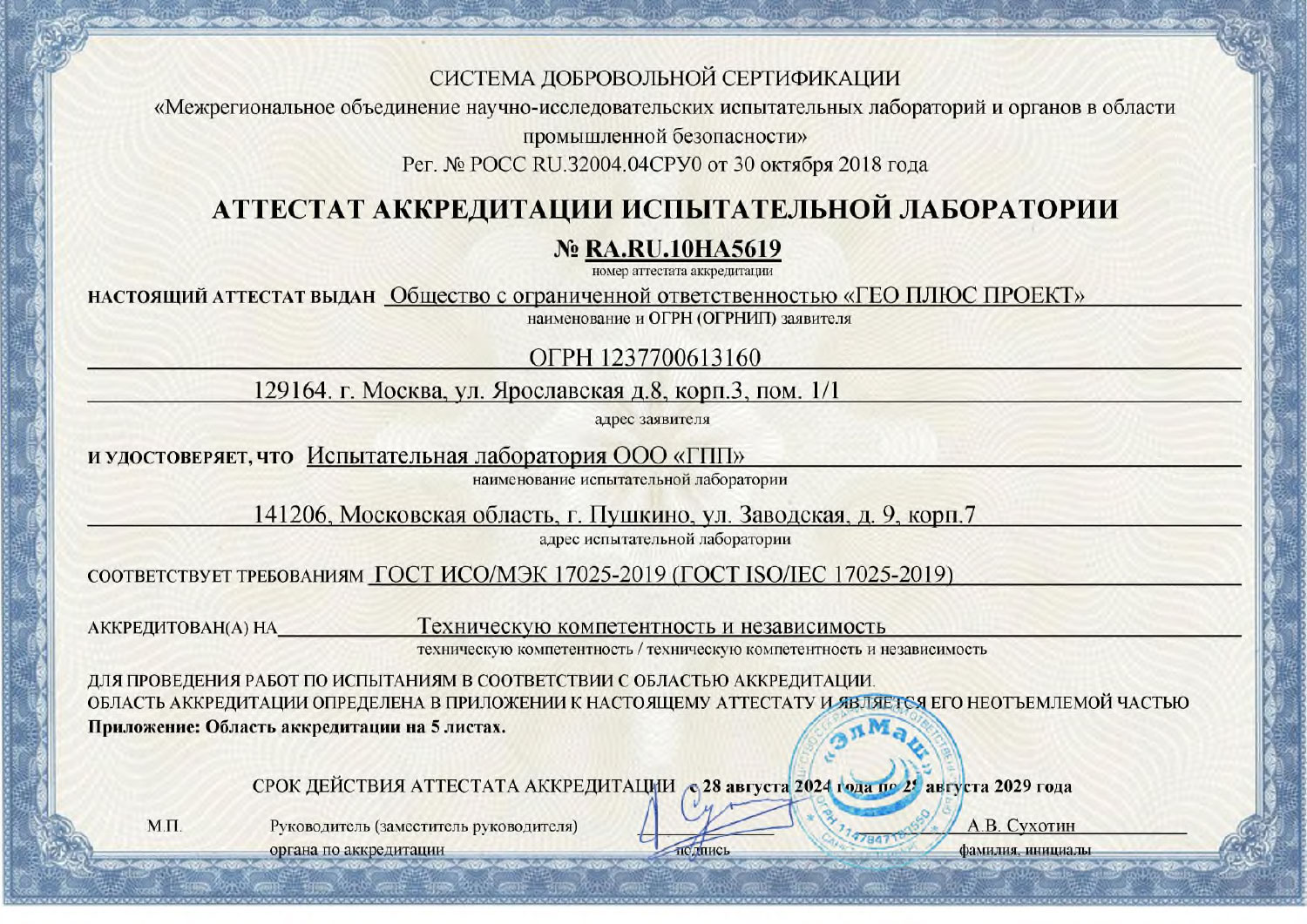 - Сертификат «Ассоциации Инженерные изыскания в строительстве» № 0219, 2007г