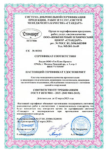 - Сертификат соответствия ГОСТ Р ИСО 9001-2001 (ISO 9001-2000), Регистрационный № СТ RU.ПМОО.СК..ОО135 от 14.09.2010г.