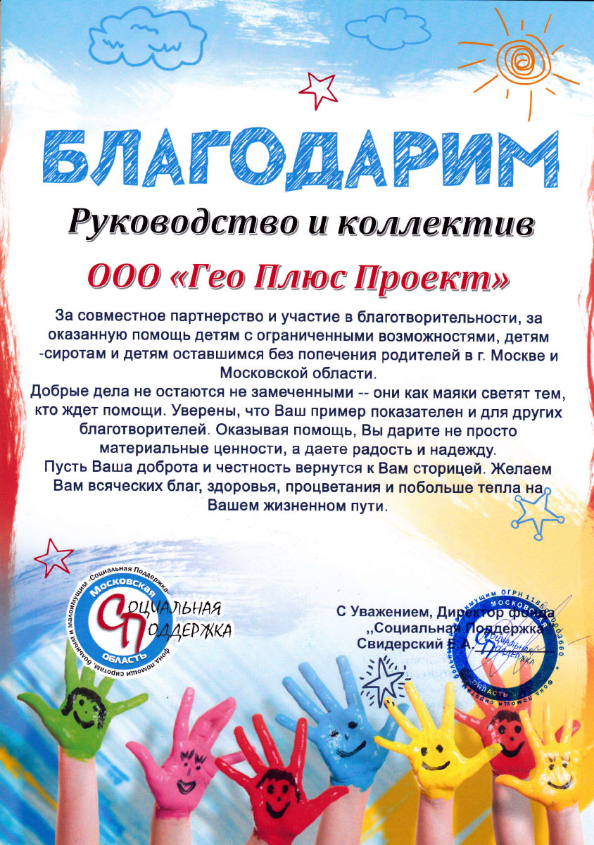 Благодарность за оперативную финансовую поддержку в виде добровольных пожертвований на счет Фонда Храма Христа Спасителя для создания благоукрашательных работ по воссозданию и художественному убранству Храма - национальной и государственной святыни России.