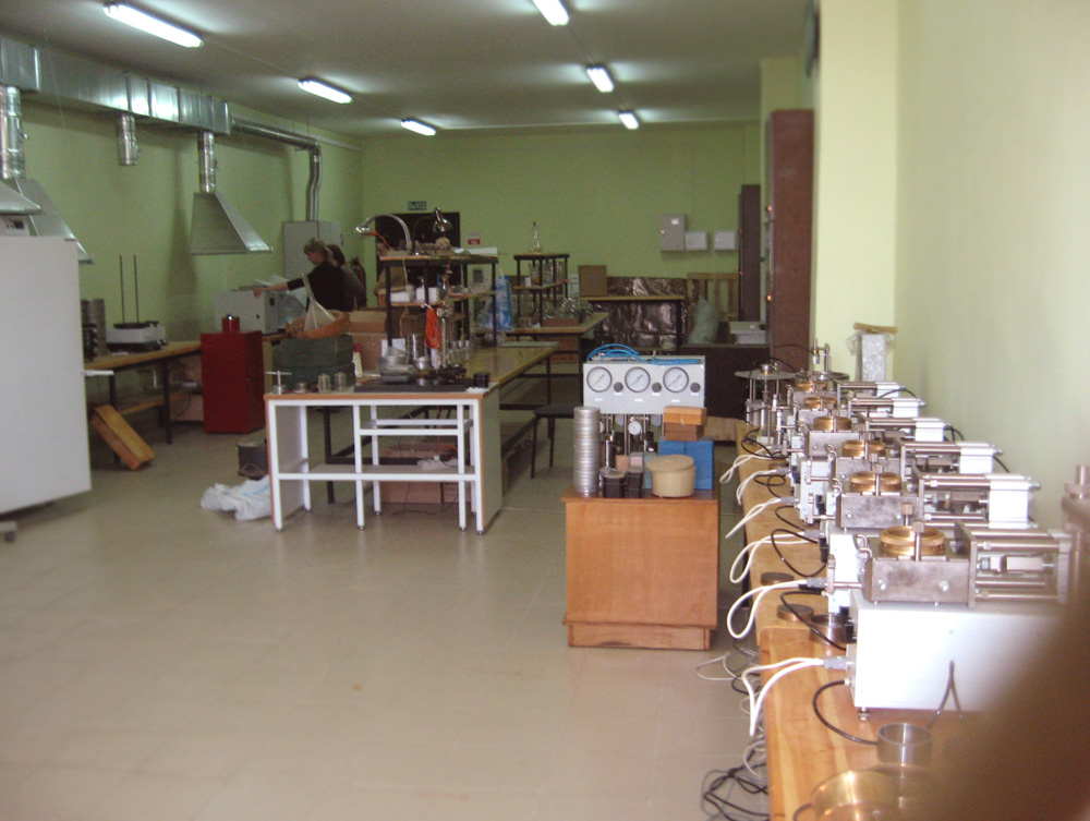 Отобранные образцы грунта поступают в лабораторию, где проводим их комплексные исследования – определяются физические и механические свойства грунтов: для глинистых грунтов – это плотность, влажность, консистенция (пластичность), пористость, модуль деформации, сцепление и угол внутреннего трения; для песчаных грунтов – фракционный состав. Эти все показатели используются проектировщиками для выбора типа фундамента и расчета осадок сооружения.